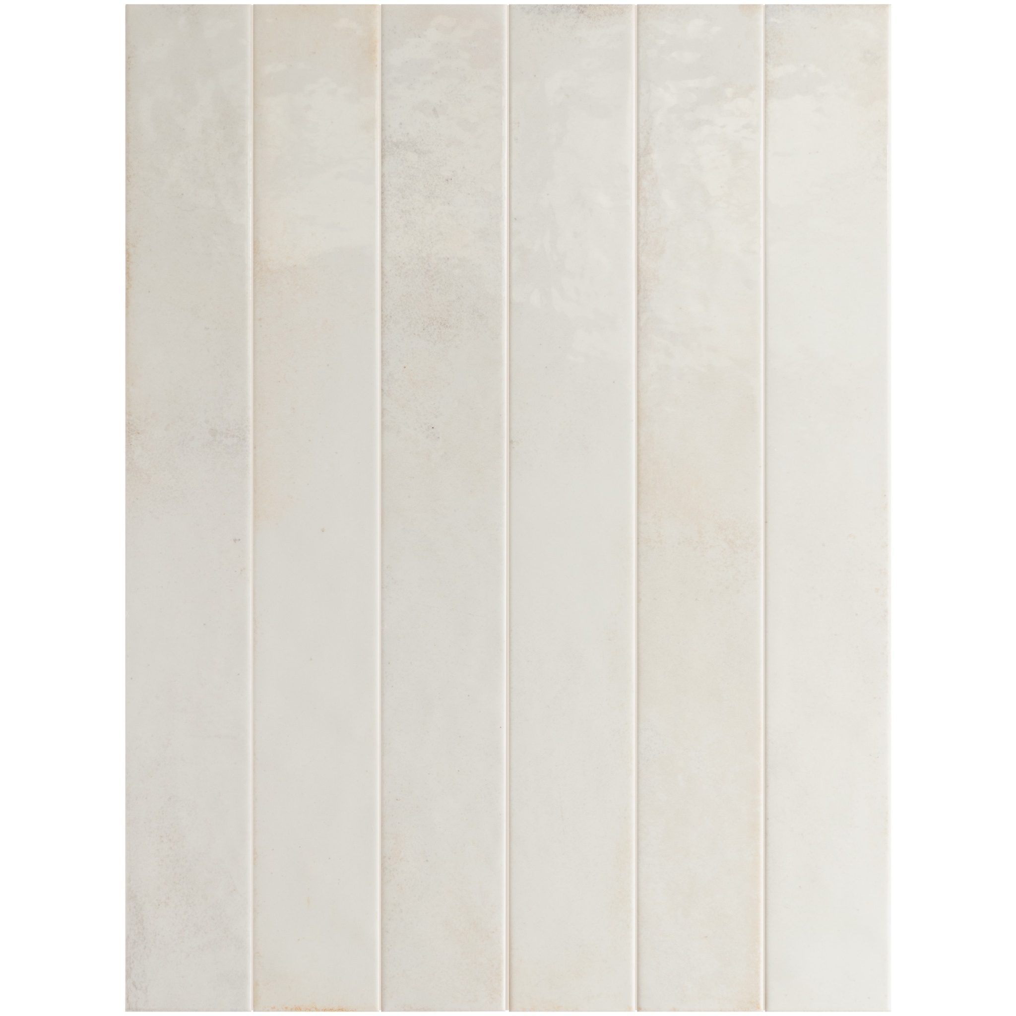 Bali 5x40 cm. Glänzende Wandfliese aus weißscherbiger Keramik im Langformat