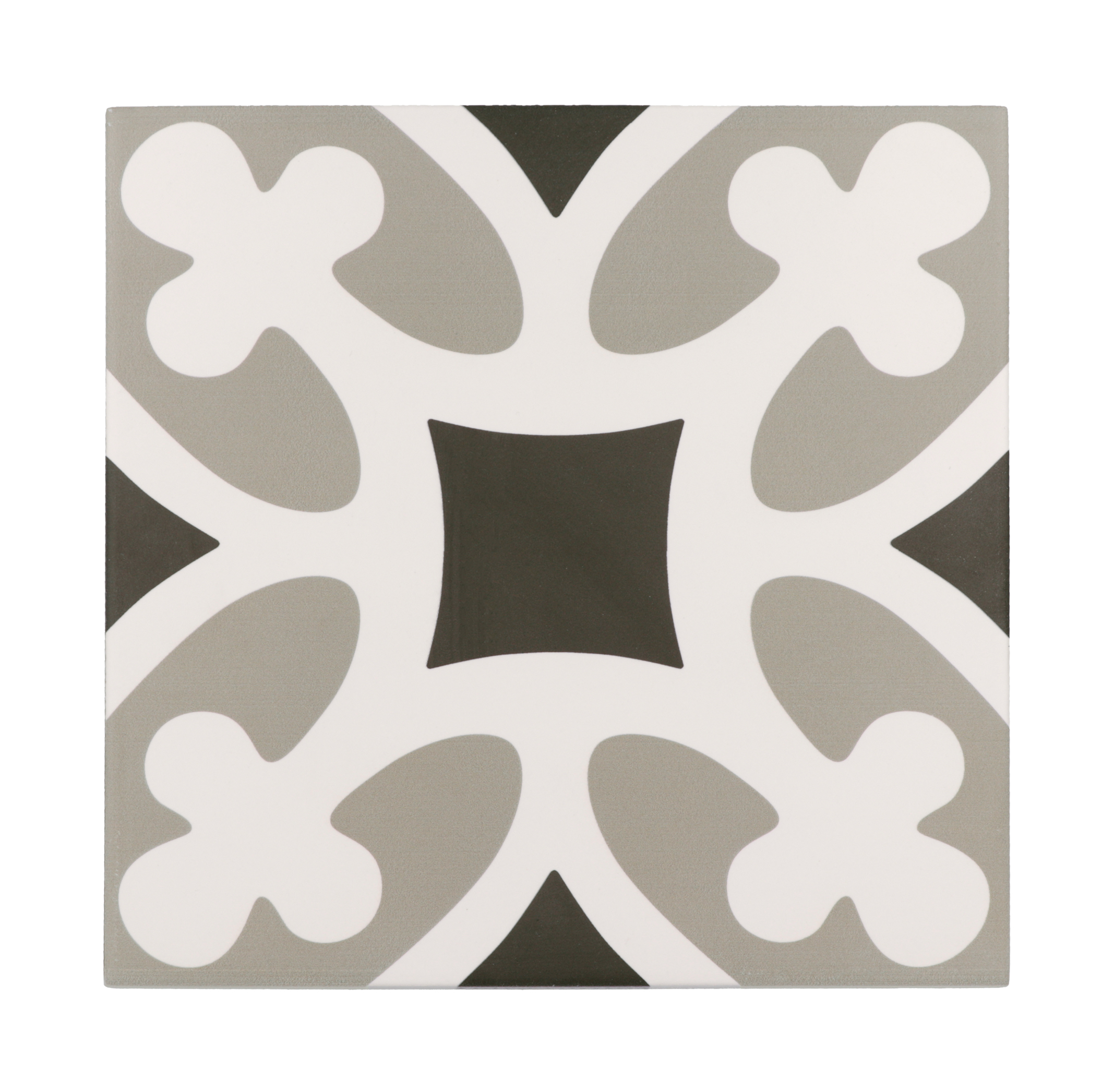 El pavimento porcelánico efecto hidráulico Rivoli 20x20 cm es una propuesta decorativa que recupera el encanto de los tradicionales suelos hidráulicos, reinterpretados en gres porcelánico de alta resistencia. Su diseño geométrico y ornamental aporta carácter, dinamismo y una fuerte identidad visual a cualquier espacio.